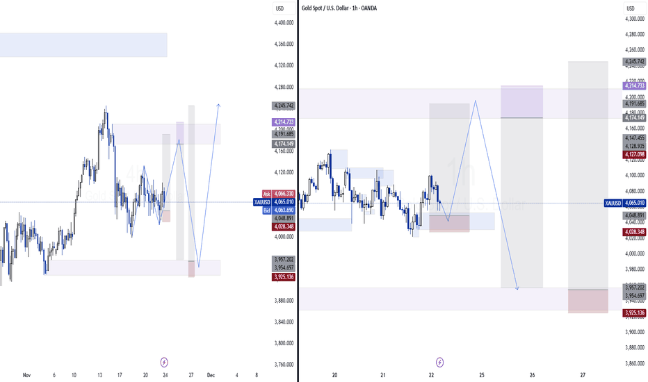 ✍️ NOVA hello everyone, Let's comment on gold price next week from 11/24/2025 - 11/28/2025 ⭐️GOLDEN INFORMATION: Gold (XAU/USD) holds firm in Friday’s North American session after Fed officials signaled the possibility of a December rate cut. The metal trades near $4,096, up 0.53%, after briefly touching $4,101. Despite mixed US data and shifting rate expectations, XAU/USD has moved sideways for the past three days as traders remain uncertain about its next direction. Recent Fed commentary and the return of key economic releases suggest a steady economy with a strong labor market and persistent inflation pressures ⭐️Personal comments NOVA: Gold price accumulates around 4100, showing signs of recovery when breaking the short-term downtrend 🔥 Technically: Based on the resistance and support areas of the gold price according to the H4 frame, NOVA identifies the important key areas as follows: Resistance: $4133, $4242 Support: $4033, $3982 🔥 NOTE: Note: Nova wishes... Read more -