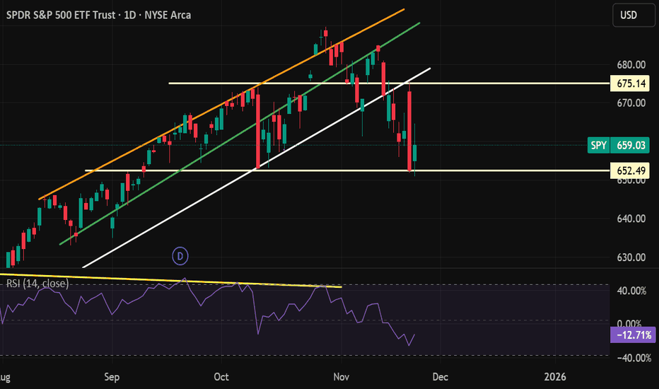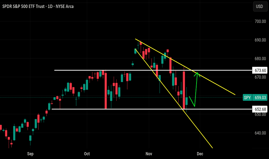 "You'll never earn if you never learn" I'll cover TVC:NYA AMEX:IWM NASDAQ:QQQ And some tech Sectors First off Spy.. I think Next week going into low vol short week we will have a slight pump. My upside target is the 50sma at 569 Or trendline resistance so that will put us between 569-572 https://www.tradingview.com/x/L6gft17y From there we will either break out and end the correction or head lower . https://www.tradingview.com/x/57fLCGso We will need to close above 675 to confirm breakout. Any breakout over 675 and we head back to ATH minimum , this is the measured move of a broadening wedge https://www.tradingview.com/x/evStBHB6 Will need to close below 650 and the next target is 635 NASDAQ:QQQ Same structure as AMEX:SPY Upside target next week is 605-608 50sma https://www.tradingview.com/x/YLpB5eZD Bearish below 580, if Qqq breaks below 580 then 550 will come next . AMEX:IWM https://www.tradingview.com/x/PJPUUREW Same broadening wedge as qqq and Spy... Read more -
