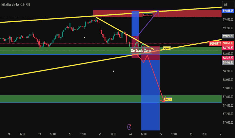 Banknifty closed near the support level of trendline and Support Zone sustain above the zone upside move and if break will expect downfall Bearish < 58500 Bullish > 59000 Wait for Proper Rejection/Pattern : Support : Bullish Resistance : Bearish Use Sl Trailing to reduce Risk *All views for educational purpose only... Read more -