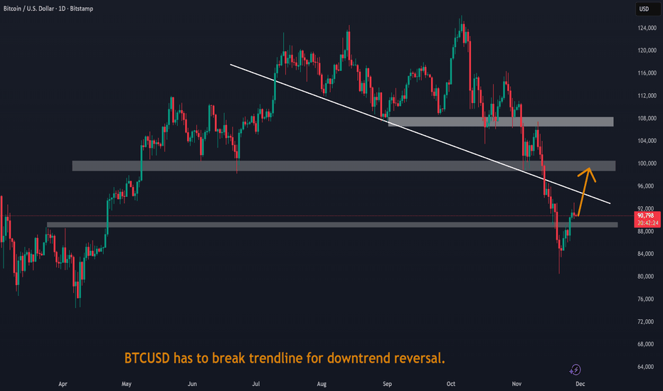 BTCUSD has to break trendline for downtrend reversal.... Read more -