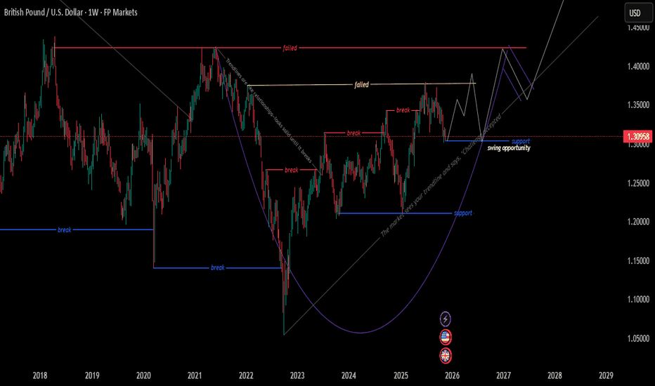 Price continues to trade inside the long-term parallel channel drawn from the higher timeframe structure. This channel has been respected for several years, and price is still moving within the same range. On the monthly chart, price is below the 50-EMA, which increases the probability of a deeper retracement toward the 200-EMA. The global downtrendline, built from the major lows, was broken by a strong two-month bullish impulse. Current price action suggests the market may be forming a retest of that breakout zone. On the weekly timeframe, price is trading below both the 50-EMA and 200-EMA, signaling potential continuation to the downside before buyers regain momentum. MACD and RSI both point lower, supporting the expectation of a pullback. A reaction around the weekly RSI 30 zone is likely. A bull flag structure is developing. The corrective move is slower than the preceding impulse, indicating buyers are consolidating. If a breakout... Read more -