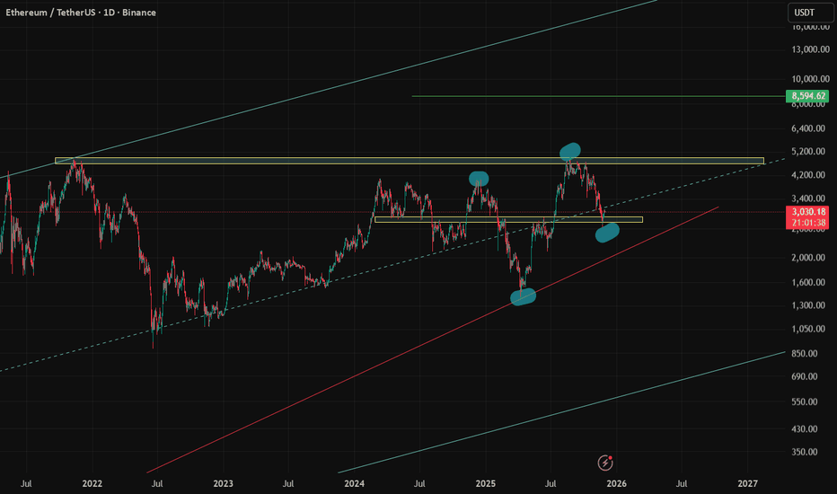 - Sometimes when we look at markets, we get confused by all the noise, Trump and governments news, ETFs, FED, bans, SEC, FUD, FOMO, fake stories, and more. - As a trader, you must always step back from news, view the trend from a distance, and filter out that noise. -------------------------------------------------------------------------------------------------------- Trading Parts (Monthly TF) : -------------------------------------------------------------------------------------------------------- - Look at the trend and indicators, that’s what you should focus on first. ETH reached its all-time high in November 2021, and then retested that same ATH level in August 2025. - Now look at the RSI and MACD levels at that time... In 2021, the RSI was overbought and the MACD crossed downward. - Alright, now compare with where we are today. The RSI is only halfway to the top (even though ETH has already reached $5K again), and the MACD just crossed upward a few months earlier. -------------------------------------------------------------------------------------------------------- In my... Read more -