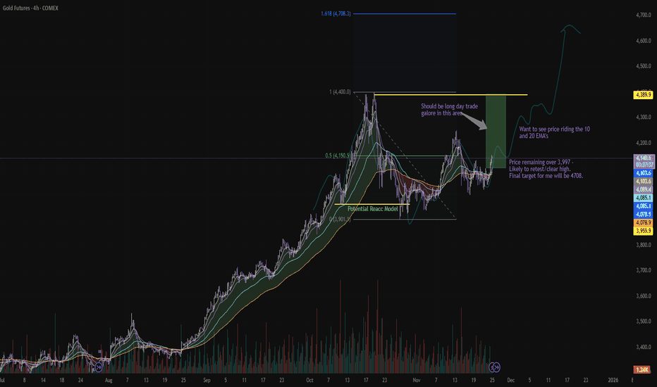 On a 4 hour time frame, looking like we potentially completed a reacc model. Price potentially continuing to retest and blow through highs. Will be looking for entries on day trades in the green highlighted area if we start to squeeze. Ultimate target will be the 1.61 fib of the range. (I use fibs as targets when we are running blue skies. I will want to see us riding the 10EMA on the hour, entries will be made on the 1 min on flag breakouts while above and riding the 10EMA on the 1 min.... Read more -