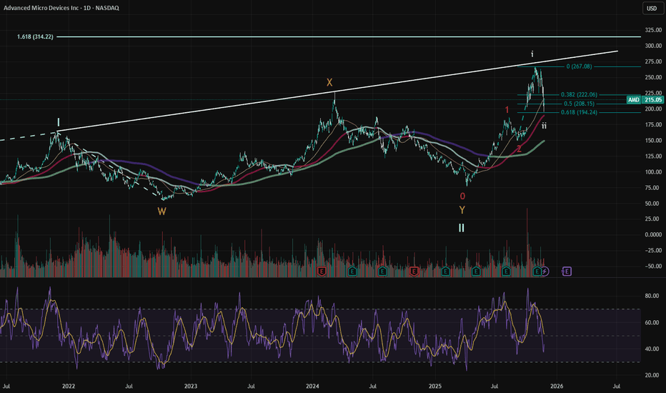 NASDAQ:AMD was in a huge WXY correction since 2021 high until April 2025 low. I count it as 1-2, i, ii of 3. Wave ii corrected 61.8% of wave i. Wave 2 didn't go deeper due to the OpenAI announcement, which started Wave i of 3. Since we're now have seen a 3-wave up, it is possible that it is a zigzag for XX as opposed to Waves 1-2, i, ii of 3. However, I assign the alternate count a smaller probability. Many tech stocks are about to finish or have already finished a wave 2 correction so this can be the same for $AMD. Bears will try to push it down to fill the gap. If that happens, I plan to add to my long-term position.... Read more -
