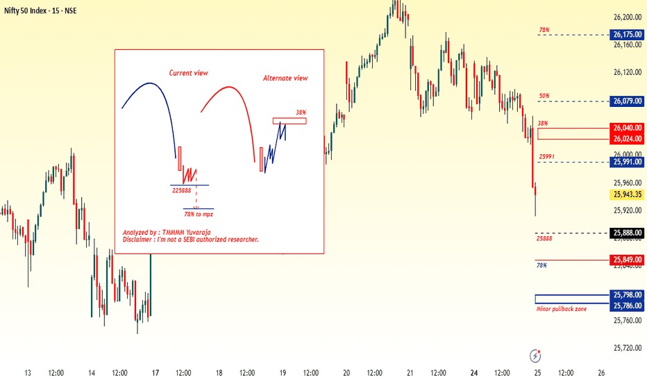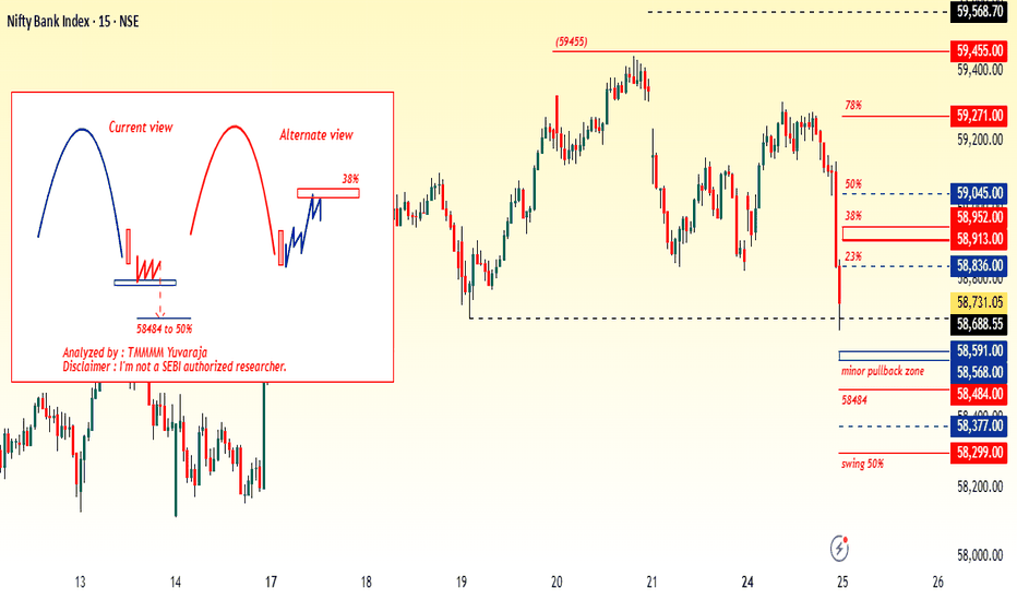 Banknifty also ha the same structure so, if the market opens weak and either consolidates or breaks the immediate support level, we can expect the correction to continue. On the other hand, if the market takes a strong rejection around the immediate support level, or if the initial market sustains the positive opening, it may reach 38% Fibonacci level in the upside. If it breaks above that level, the market could move toward the 50% to 78% Fibonacci zones on the upside. Note > If it cannot move above the 38% level, the market is likely to remain bearish.... Read more -