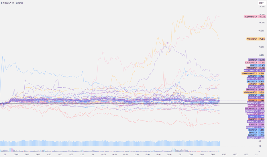 One thing that stands out lately is how several mid-caps and low-caps have started to drift above CRYPTOCAP:BTC on relative performance. When BTC sits in the middle of the pack while pockets of alts are steadily printing higher % moves, it usually hints at a rotation brewing. This kind of spread normally shows up when: - BTC cools off or ranges after a strong move - Liquidity becomes more comfortable chasing risk - Traders start searching for higher beta plays - Early bids creep in across multiple alt sectors at the same time You don’t need a breakout or a big narrative to see it — the relative strength alone is a decent tell. When alts cluster above BTC while the rest flatten out, it’s often the first sign that the market is prepping for an alt window. It doesn’t guarantee a full-blown alt season, but historically this type of... Read more -