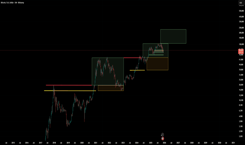 PROFESSIONAL MACRO OUTLOOK — BITCOIN LONG-TERM MARKET STRUCTURE ANALYSIS Bitcoin’s current price action suggests a high probability of repeating its historical macro behavior, particularly the structural pattern observed during the 2017–2021 market cycle. Historically, Bitcoin has consistently used the previous cycle’s All-Time High (ATH) as a major structural support during its next macro consolidation phase. This was clearly demonstrated when the 2021 cycle leveraged the 2017 ATH as a reaccumulation floor, followed by a deep liquidity sweep into the $15,000 region — a precise reflection of smart-money behavior targeting inefficiencies and unmitigated liquidity. In the present cycle, a similar structure appears to be forming. Bitcoin is showing signs of validating the 2021 ATH as its next macro support. Should this structure fully confirm, a downside retracement into the major liquidity pools around $49,000 or even $39,000 becomes a realistic and technically sound scenario. These zones represent significant inefficient price areas... Read more -