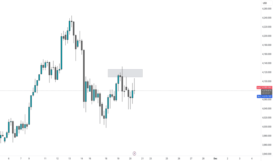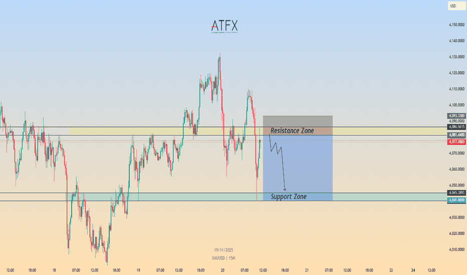 📊 Technical Structure TVC:GOLD Gold (XAU/USD) is trading near $4,075, struggling to gain traction after a sharp intraday recovery. Price remains capped by the resistance zone at $4,081–$4,086, while intraday support is seen between $4,041–$4,045. The structure currently favours a short-term bearish reaction, with price showing repeated rejection at the resistance zone. A break below $4,060 could accelerate downside momentum toward the support zone, while any sustained push above $4,093 would invalidate the bearish bias. 🎯 Trade Setup Idea: Sell from resistance zone targeting retest of support. Entry: $4,081 – $4,086 Stop Loss: $4,094 Take Profit 1: $4,045 Take Profit 2: $4,041 Risk–Reward Ratio: ≈ 1 : 3.4 Bias turns bullish only if price closes above $4,093. 🌐 Macro Background Gold trades above $4,100 ahead of the delayed US September NFP report, which was pushed back due to the 43-day government shutdown, the longest in U.S. history. FXStreet notes that:... Read more -