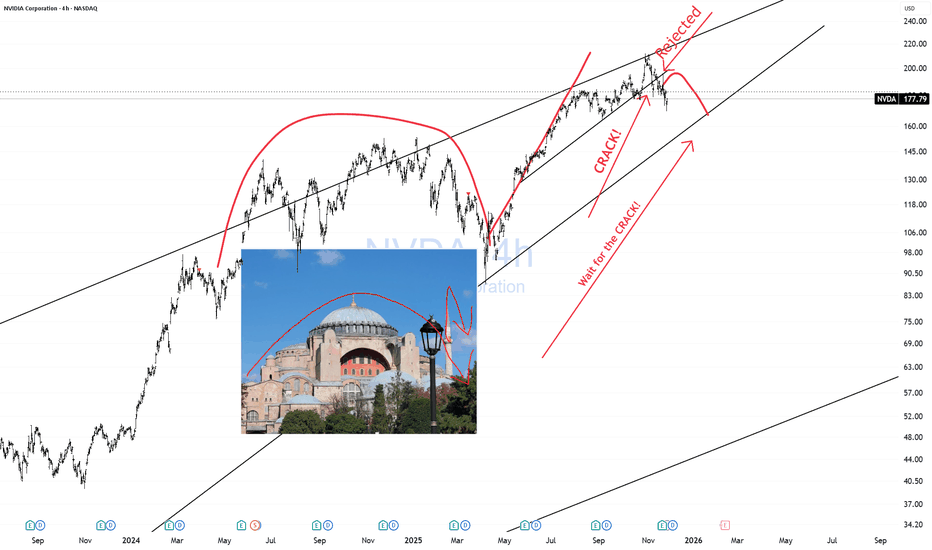 NVDA is starting to fall apart. Nice rounding top followed by mini towerspike (as shown in the picture) that is now starting to roll over. The price was rejected after the first crack that bounced lower. That's the big warning CRACK! Now we wait for the bigger CRACK! to occur. Despite how small it looks on the chart, the reality is that NVDA has lost 20% or 1/5 of its total value already. There is only so much B.S. they can come out and say to pump the stock. Eventually, that dies off along with the stock. Remember! Circular financing is flat-out illegal because it fabricates the appearance of real demand, real capital, or real creditworthiness when none actually exists. Itβs the financial version of forging a signature. This administration has gutted the SEC, and no one will dare call it out for what it is in AI. But the... Read more -