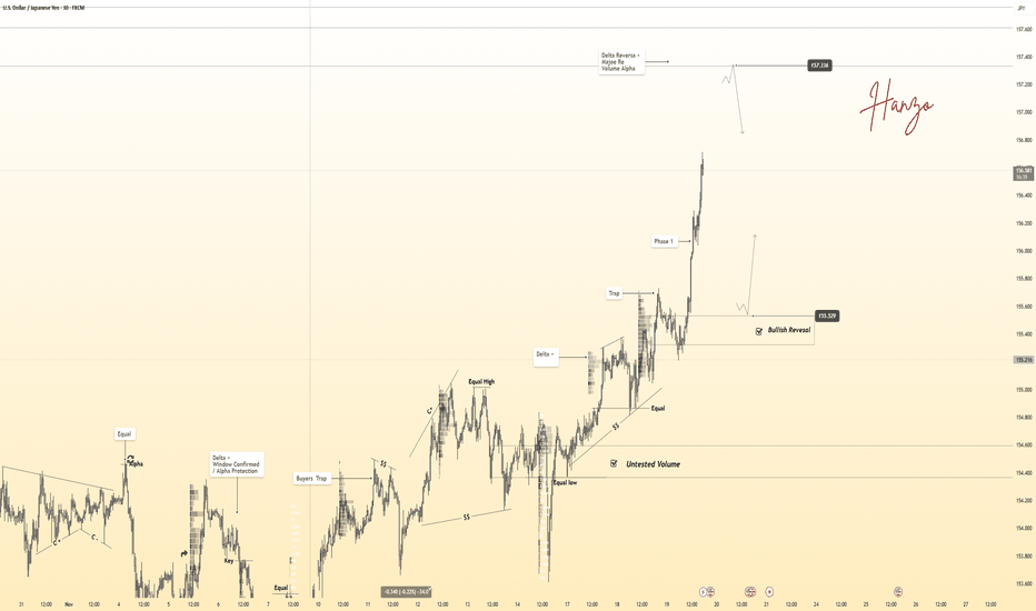 ⚡Base : Hanzo Trading Alpha Algorithm The algorithm calculates volatility displacement vs liquidity recovery, identifying where probability meets imbalance. It trades only where precision, volume, and manipulation intersect —only logic. ✈️ Technical Reasons / Direction — LONG / Reversal 155.530 Area ☄️Bullish momentum confirmed through strong candle body. ☄️Structure shifted with higher-low near key demand base. ☄️Volume expanding confirms order-flow alignment upward. ☄️Buyers reclaimed imbalance with sustained clean break. ☄️Algorithm detects rising momentum under low liquidity. ✈️ Technical Reasons / Direction — SHORT / Reversal 157.350 Area ☄️Bearish rejection confirmed through sharp candle body. ☄️Lower-high forming beneath resistance supply region. ☄️Volume decreasing confirms exhaustion in price rally. ☄️Sellers regained imbalance with heavy top rejection. ☄️Algorithm detects fading demand and shift to control. ⚙️ Hanzo Alpha Trading Protocol The Alpha Candle defines the day’s real control zone — the first battle of momentum. From this origin, the Volume Window reveals where... Read more