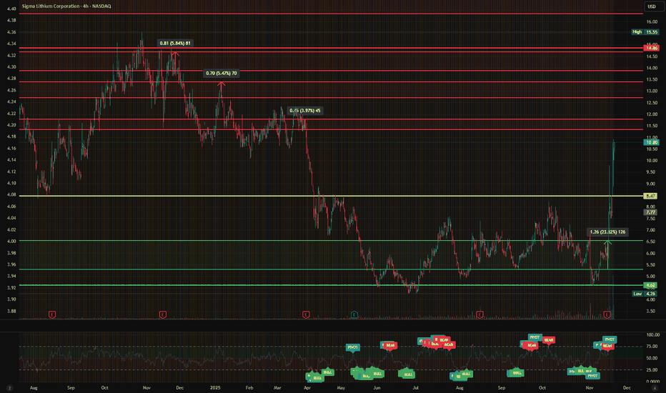 NASDAQ:SGML has exploded through multiple resistance zones this week — breaking cleanly above $8.47 and extending into the $10.80 range with a massive +23% daily move. This breakout comes after months of consolidation in the $5–$7 zone and now positions Sigma Lithium for potential continuation toward $14.86, a key structural resistance from late 2024. The chart shows strong momentum and volume confirmation — a classic signal of accumulation turning into expansion. Technical Overview Support Levels: $8.47 → $7.50 → $6.20 - Resistance Levels: $10.80 → $11.50 → $14.86 - Structure: Long-term downtrend break confirmed; now trending inside a bullish expansion channel Momentum: RSI at breakout threshold, rising fast; volume at multi-month highs - Trend Bias: Strongly bullish above $8.47 As long as NASDAQ:SGML holds above $8.47, this structure remains intact with upside potential toward the $14–$15 zone. A retest and continuation could confirm a full reversal pattern after a prolonged... Read more -