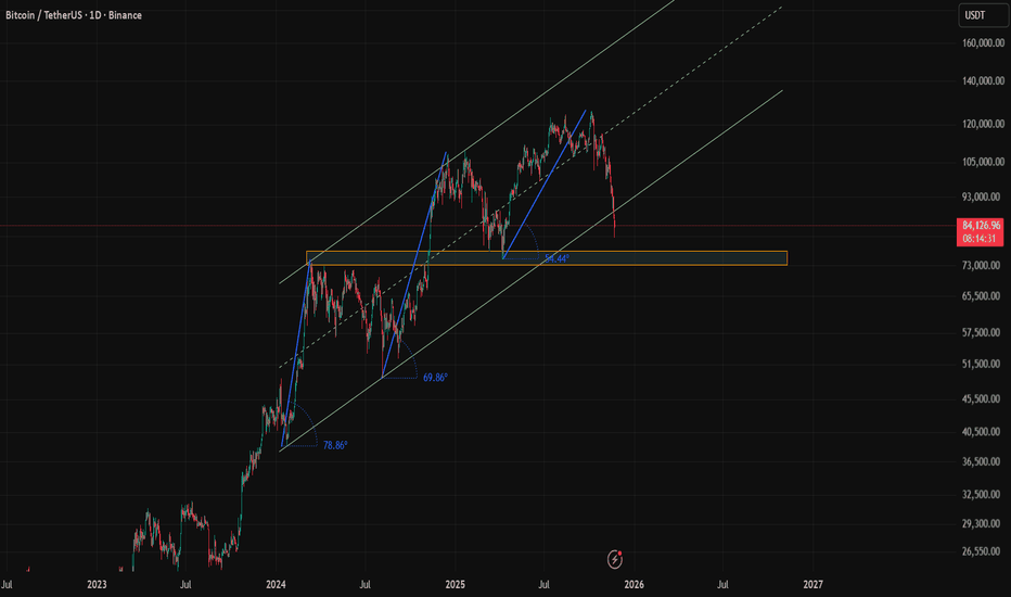 https://www.tradingview.com/x/5BXYjOsN/ We can clearly see that Bitcoin’s bullish impulses have been losing strength over time. Each upward wave is forming with a smaller angle, showing a gradual reduction in momentum. Such behavior often signals that the market is entering a mid-term or even long-term correction/consolidation phase, where price needs time to rest and regain energy before any potential continuation of the larger trend. Bitcoin is testing the lower boundary of its ascending channel. If this support doesn’t hold, the probability of an extended sideways or corrective structure becomes higher.... Read more -