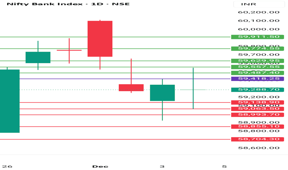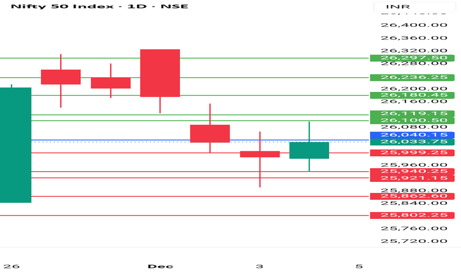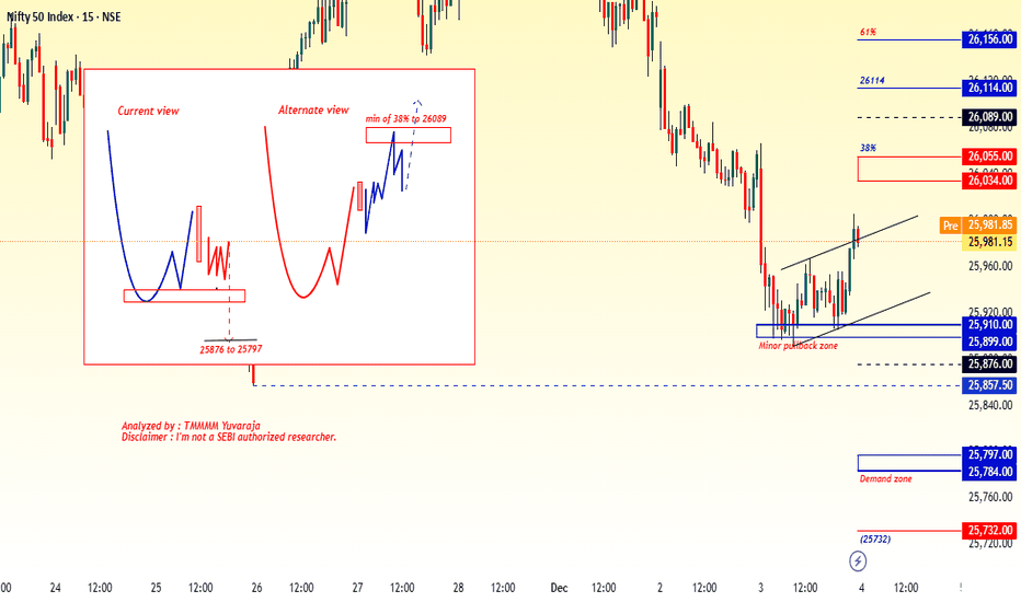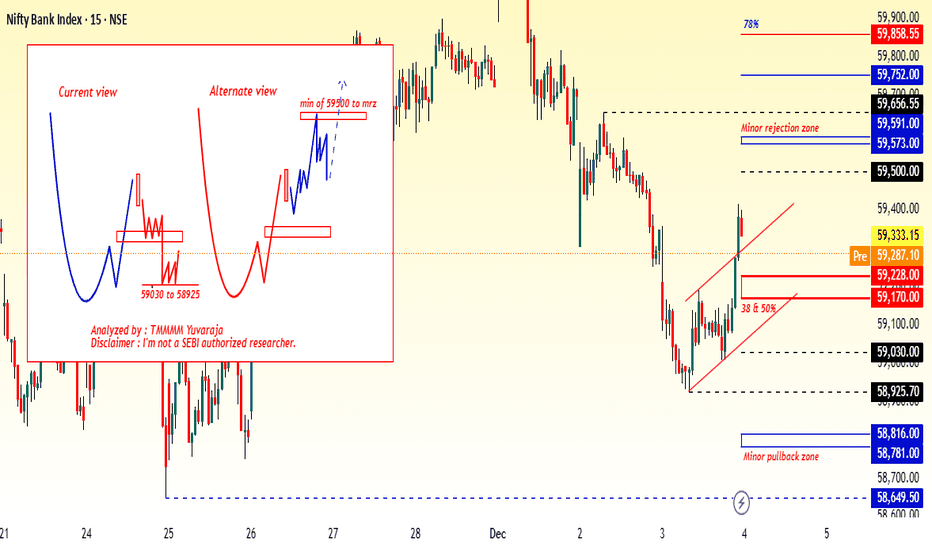 Good morning, friends! 🌞 Market Directions and Levels for December 4th: In the previous session, the Dow Jones continued the pullback; however, the GIFT Nifty indicates a neutral to slightly negative opening. What to Expect Today? There are no changes in sentiment until the RBI policy announcement, so the market may experience gradual ups and downs. The momentums are unpredictable. Structurally, if the initial market takes a pullback, we can expect a pullback continuation with a little consolidation, because yesterday’s pullback had little strength (alternate view). On the other hand, if the market sustains the decline and breaks the immediate support level, we can expect some consolidation and a downside breakout (current view).... Read more -