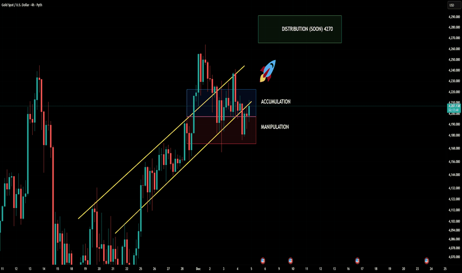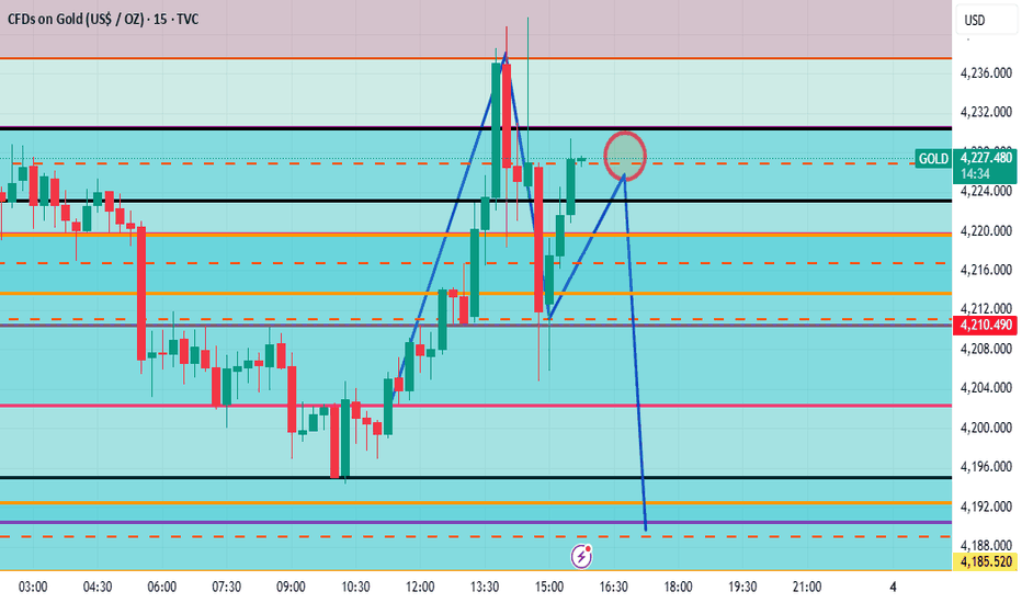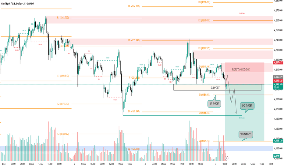 📉 XAUUSD ANALYSIS & LEVEL FORECAST On the M15 timeframe, XAUUSD has formed a Wyckoff Top pattern, showing multiple rejections at the upper zone. This confirms seller dominance, leading to a sharp downside move. The structure suggests continued bearish pressure as long as price stays below resistance. 🔑 Key Levels Resistance: 4209 Support: 4189 🎯 Technical Targets (Bearish) 4185 4165 4145 📌 Technical Outlook Gold has completed distribution at the top and activated a bearish move. A break below 4189 will strengthen sellers and can drive price toward the listed targets. Stay cautious of any pullbacks to 4209, as this remains the major rejection zone.... Read more -
