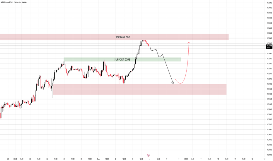 📅 Q4 | W49| D4| Y25 | 📊 GBPUSD FRGNT Daily Forecast HTF 🔍 Analysis Approach: I’m applying Smart Money Concepts, focusing on: Identifying Points of Interest on the Higher Time Frames (HTFs) 🕰️ Using those POIs to define a clear trading range 📐 Refining those zones on Lower Time Frames (LTFs) 🔎 Waiting for a Break of Structure (BoS) for confirmation ✅ This method allows me to stay precise, disciplined, and aligned with the market narrative, rather than chasing price. 💡 My Motto: "Capital management, discipline, and consistency in your trading edge." A positive risk-to-reward ratio, paired with a high win rate, is the backbone of any solid trading plan 📈🔐 ⚠️ Losses? They’re part of the mathematical game of trading 🎲 They don’t define you — they’re necessary, they happen, and we move forward 📊➡️ 🙏 I appreciate you taking the time to review my Daily Forecast. Stay... Read more -