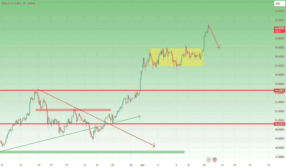 On Monday, I highlighted something important in my Silver analysis: after a full week of rectangle consolidation, the most probable scenario was an upside break — with a projected target around 61. I also repeated a point I’ve been making for weeks: Silver continues to look stronger than Gold. Fast-forward to now: 🔹 That 61 target has been reached 🔹 Silver rallied more than 3,000 pips from the bottom to the high yesterday 🔹 The broader bullish trend is not in question Let me be very clear: this post is not about denying the bullish structure. The trend is intact, momentum is real, and a new ATH is absolutely possible. ⚠️ The Warning: A Short-Term Drop Is Becoming Likely This is a timing post, not a trend post. If you are a short-term trader and not already long, entering here is pure FOMO — and extremely risky. Why? Because the... Read more -
