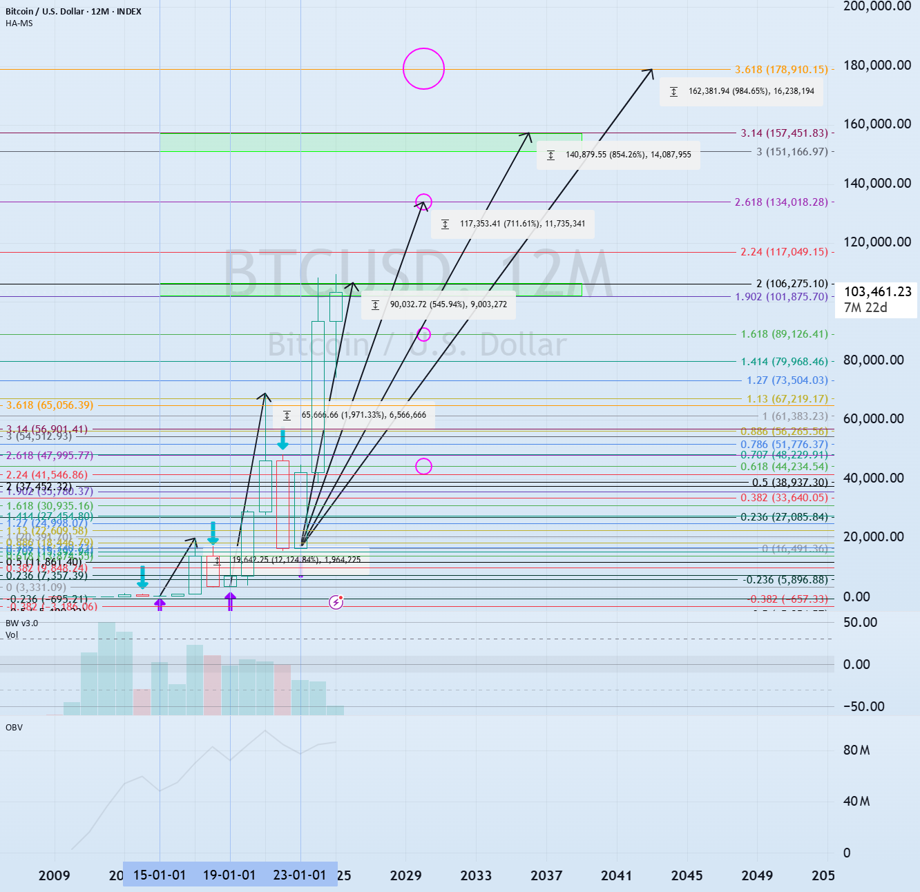 Hello, fellow traders! Follow us to get the latest updates quickly. Have a great day! ------------------------------------- #BTCUSDT https://www.tradingview.com/x/0EKxwbgo/ To initiate a bullish trend, the price must rise above and sustain the OBV Low indicator level. Considering the basic trading strategy of buying around DOM(-60) ~ HA-Low and selling around HA-High ~ DOM(60), the current price position represents a buying opportunity. However, if the price falls between DOM(-60) and HA-Low, a stepwise downward trend is likely, so you should consider a response plan. https://www.tradingview.com/x/8C8Uvcol/ If the price falls below the DOM(-60) indicator, you should check for support around the 69000-73499.86 level. This is because the 69000-73499.86 level represents an important support and resistance zone for sustaining an uptrend from a long-term perspective. https://www.tradingview.com/x/2O6FRM5o/ If the price declines from the 69,000-73,499.86 range, it is expected to form an uptrend around 42,000, a level never seen again. - https://www.tradingview.com/x/0uCGd6CP/ If the price rises... Read more -