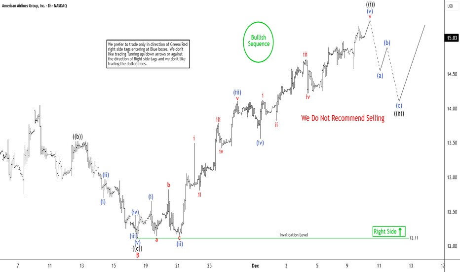 American Airlines (AAL) maintains a bullish sequence from the April 4 low, supporting prospects for further upside. A 100% Fibonacci extension projects a target of $16.8, reinforcing the constructive technical outlook. The short‑term cycle from the September 30 low is unfolding as a zigzag Elliott Wave structure. From that low, wave A advanced to 14.05. A corrective pullback in wave B then terminated at 12.11, as confirmed by the hourly chart. Wave C is now progressing higher in the form of an impulse Elliott Wave structure. Within this advance, wave (i) ended at 12.65. The dip in wave (ii) found support at 12.15. Wave (iii) extended to 14.11, while the pullback in wave (iv) settled at 13.56. The stock is expected to complete wave (v) soon, which should finalize wave ((i)) of a higher degree. Afterward, a corrective phase in wave ((ii)) is anticipated. This will address the cycle from... Read more -