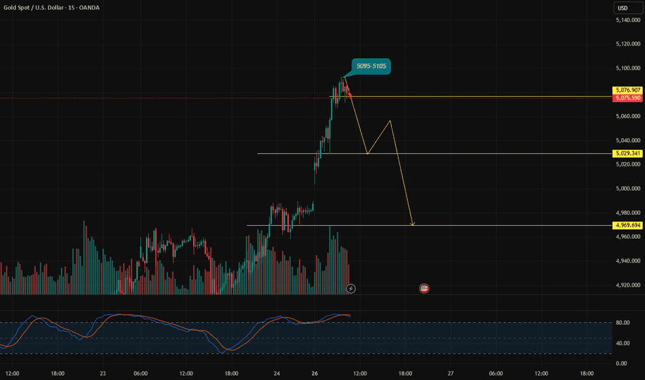 1. Is the $5,100/ounce mark achievable? Currently, the world gold price has officially surpassed the $5,000/ounce mark (recorded on January 26, 2026) due to extreme geopolitical instability and US tariff announcements. Technically: The $5,100 mark is not just a number; it lies within a Fibonacci extension zone (typically 161.8% or higher of previous upward waves). This is an extreme "overbought" zone on weekly and monthly charts. Psychologically: When an asset rises too quickly (more than 70-80% within a year), the pressure to take profits at round numbers like $5,000 or $5,100 is extremely high. 2. The "130-Price Drop" Scenario (from $5,100 to $4,970) A $130/ounce drop in gold after reaching its peak is a very likely scenario for the following reasons: Technical Correction: A drop of about 2-3% (equivalent to $100-150) is a "healthy" correction in a strong uptrend. It helps the market shake off short-term traders. Support Zones: If... Read more -