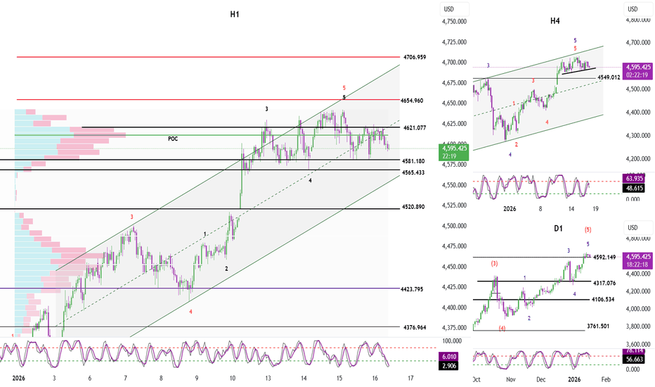 Price is currently consolidating within a short-term descending channel following a strong bullish impulse. This move appears corrective in nature rather than a full trend reversal. From a market structure perspective, the higher timeframe bias remains bullish, supported by the previous BOS and sustained higher highs. The current pullback is forming a controlled structure, suggesting potential absorption and preparation for continuation. A valid bullish scenario would be confirmed with a clean breakout and acceptance above the descending channel, ideally followed by a minor BOS on lower timeframes. In that case, price may seek liquidity above recent highs and continue toward the projected upside targets. However, failure to hold above the current range and a decisive break below the IDM / key internal lows would invalidate the bullish continuation and open the door for a deeper retracement toward the HTF demand zone (CHoCH area). This analysis is structure-based and educational, not... Read more -