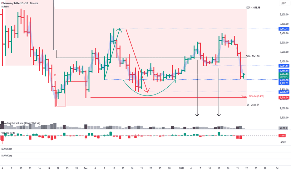 Hi traders and investors! Ethereum, daily timeframe. An interesting setup: the seller’s initiative remains in control, with a target at 2,716. There was a local buyer initiative from 2,907 to 3,447. Then the seller temporarily broke below 2,907, but this move turned out to be a manipulation of the level — the buyer quickly pushed the price back above 2,907. However, after that, the buyer failed to break the previous local high at 3,447. We saw two attempts to move higher: — the first one came with volume but was absorbed by the seller; — the second attempt showed a very strong delta, yet it was again absorbed by the seller. Conclusion: the buyer looks weak — after the manipulation of 2,907, it couldn’t continue higher or break the local high. Looking at yesterday’s daily candle, volume was accumulated around the 3,054 level. From this area (or slightly higher, around... Read more -