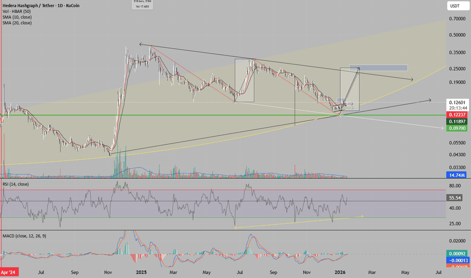 I am simply observing the market and a possible pattern that I have identified. My trade plan is valid until the first week of February. If the market does not align with my idea, I will close my position. However, I will follow this plan within the time frame I have given the market to react. My target area is around 0.2400–0.3000 if the market cycle turns bullish again. If that happens, I plan to re-enter at a lower level than my selling area. If this makes sense to you or if you have any comments, I’d be happy to hear them. https://www.tradingview.com/x/1Bg2uRVS/... Read more -