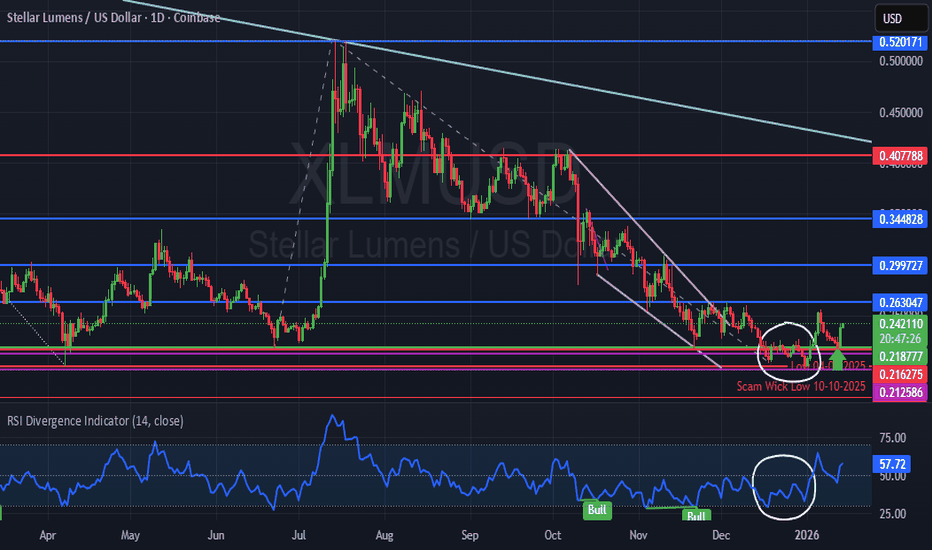 RSI oversold with bullish divergence on the year chart! I think XLM could RISE around the resistance trend line around 0.420 lol My target is around 85% move!... Read more -