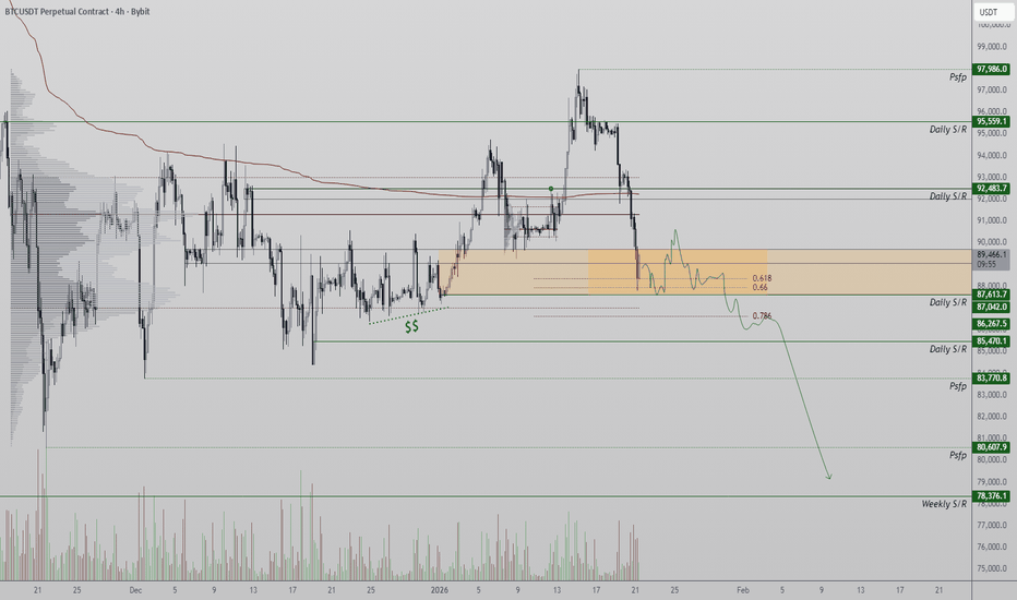 Bitcoin has seen an impulsive corrective move below key support, with price now trading under the $90,000 technical level. This breakdown is significant, but the support flip is still developing, meaning BTC can continue consolidating around this zone on lower time frames before the next expansion move is confirmed. Key Levels to Watch: - $90,000: former support now acting as resistance - $87,625: key support BTC must hold for a bounce - Sub-$80,000: downside liquidity zone if support fails From a technical perspective, $87,625 is now the most important line in the sand. As long as price action remains above this level on a closing basis, Bitcoin still has room to stabilize and produce a stronger bounce back into prior value. Holding this region would suggest buyers are defending the breakdown and attempting to build a short-term base. However, if BTC loses $87,625, downside risk increases sharply. There is significant... Read more -
