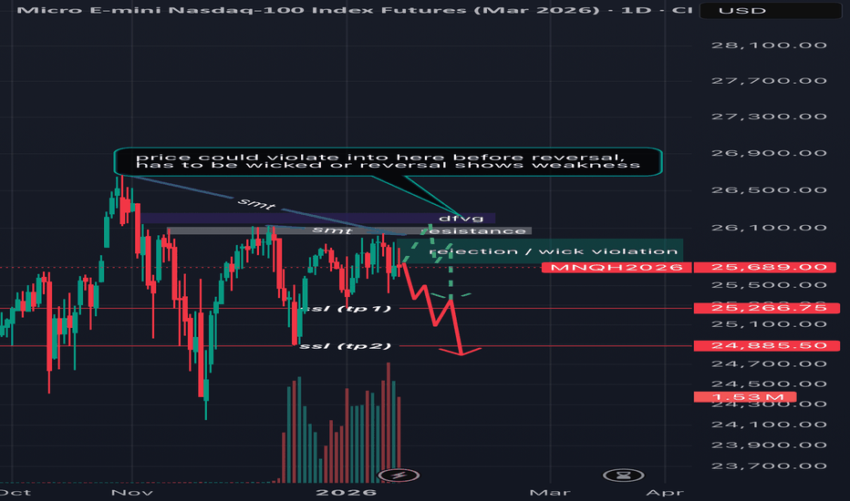 clear resistance point on the daily, price cant break through. am expecting short term bullish power to this daily fvg. if we wick violate on the daily tf in and out of this fvg we can expect bearish pressure. key targets are the both liquidity points marked out.... Read more
