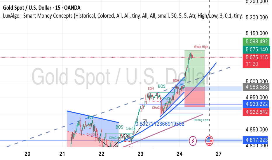 Gold just went parabolic! 🚀 We successfully hit our TP as price surged past the $5,000 mark. Using the Smart Money Concepts (SMC) strategy, we identified the bullish BOS (Break of Structure) and rode the trend to the moon. Watch how we managed this trade on the 15m chart!... Read more -