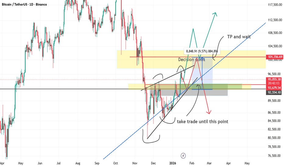So here is my BTC analysis. Just to make it as short as possible: - The blue trendline is a multi year trendline, which has been tested recently. - So BTC so far is still in a downtrend, until we close and stays above the Decision point (recent support which broke, and theoritically now will be acting as a resistance). - I wouldnt take the chance (if i to take this trade) to wait and see if it breaks the resistance and stays above it, i would however take profit and wait for more confirmations that resistance will now acts a support. Anyways, here is my analysis and hope it helps. -EURUSD, GBPUSD, NQ, GC USDJPY will be posted tomorrow. Good luck Everyone!... Read more -