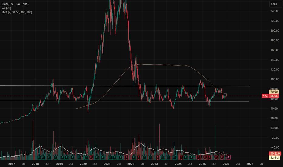 - NYSE:XYZ is approaching 200 days weekly SMA @ 70 and if it captures this trend line and make it a support then we are looking at $100+ NYSE:XYZ - NYSE:XYZ has disappointed a lot of times in the past where technicals always fooled momentum traders so approach this stock with caution. - NYSE:XYZ products are amazing but leadership at NYSE:XYZ are bunch of coasters.... Read more -
