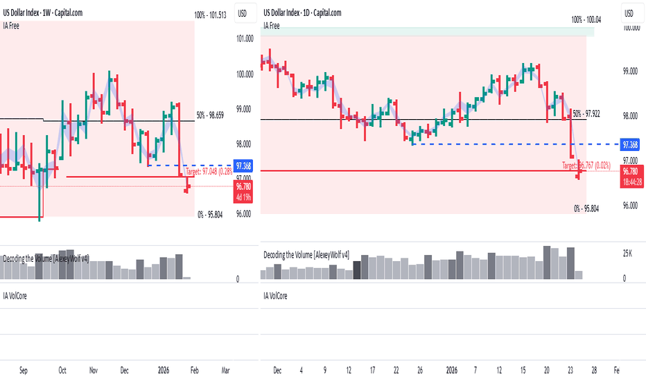 Hi traders and investors! The U.S. Dollar Index has reached the seller’s weekly and daily targets — 97.048 and 96.767, respectively. At this stage, a period of consolidation and possibly a local bounce is likely. However, in the medium term, the initiative remains with the seller. More details can be found in my long-term analysis. Profitable trades! This analysis is based on the Initiative Analysis (IA) method.... Read more -