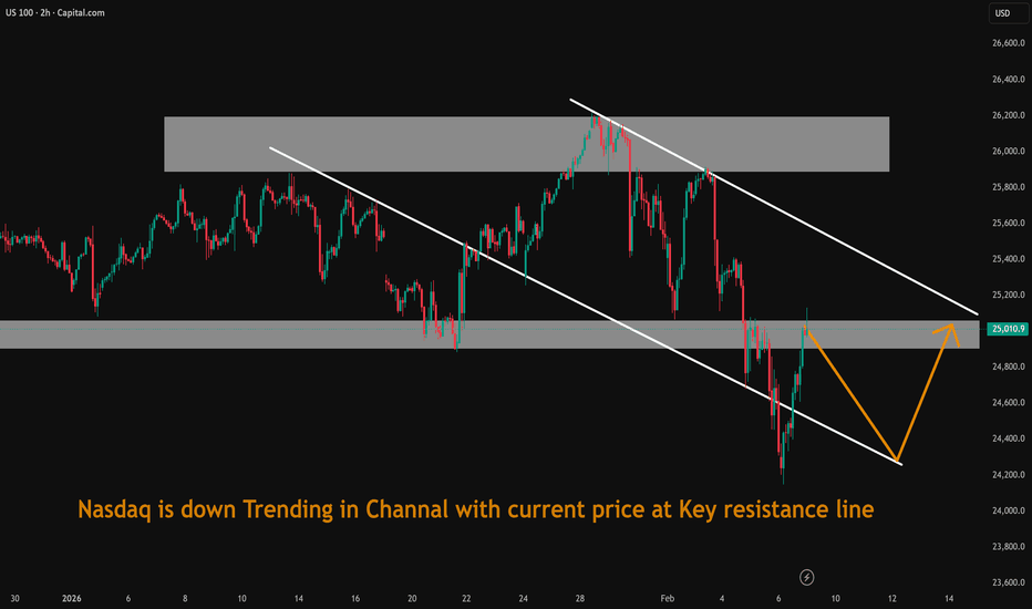 Nasdaq is down Trending in Channal with current price at Key resistance line.... Read more -