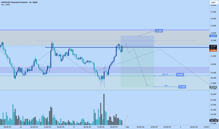 New trading day. New short on #hype 🛑Sl: $33.6 or higher 🎯tp1: $28.6 🎯Full exit: $27.4 💰2.24-3RR #hyperliquid... Read more -