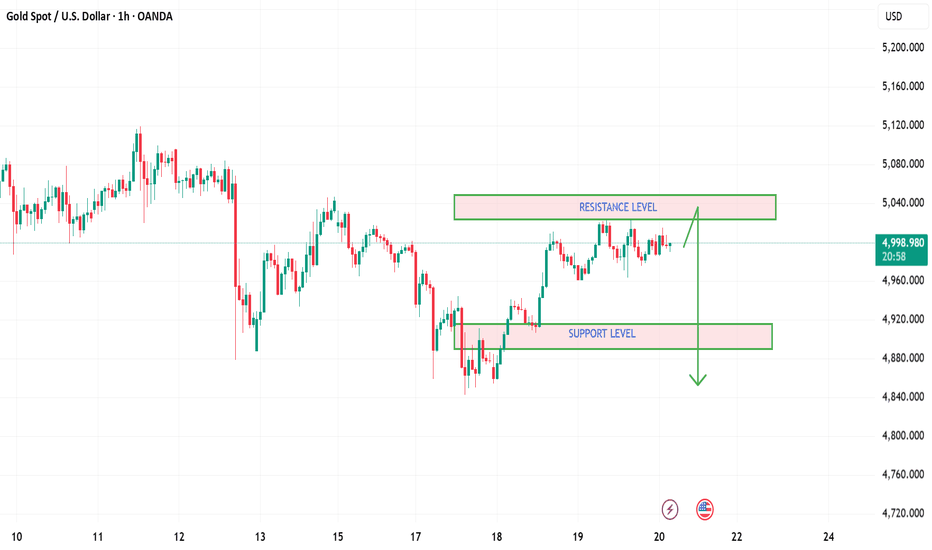 This is Gold Spot / U.S. Dollar (XAUUSD) on the 2H timeframe. Here’s a structured breakdown of what the chart is showing: 🔎 1️⃣ Market Structure 🟦 Previous Structure: Descending Channel Price was moving inside a clear downward channel Lower highs + lower lows = short-term bearish structure Momentum was fading near the lower boundary 👉 This suggests the downtrend was losing strength toward the end. - 🚨 2️⃣ Breakout Signal On the right side of the chart: Price broke above the descending channel Strong bullish candles followed Market is now retesting the breakout zone This is a classic: > Breakout → Pullback → Continuation setu The purple zone marks support formed after breakout. 📍 3️⃣ Trade Setup on Chart 🔵 Entry Area: Around 4,990 – 4,995 This is: Previous resistance turned support Breakout retest zone Small consolidation before push up 🔴 Stop Loss: Around 4,940 Placed: Below support Below... Read more -