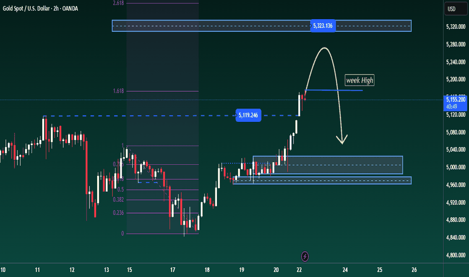 XAUUSD – Brian | Weekly Outlook: Expansion After Liquidity Sweep? Gold has just printed a fresh weekly high near 5,150+, completing a strong impulsive leg from the 4,880 accumulation base. The 2H structure shows a clean breakout above prior resistance (5,119 area), confirming short-term bullish momentum. However, price is now approaching a higher timeframe liquidity zone. 🔎 Technical Structure Current Weekly High: ~5,150–5,160 Major Liquidity Target: 5,300–5,323 (higher timeframe supply) Breakout Level: 5,119 (previous resistance, now potential support) Demand Zone Below: 4,990–5,020 Deeper Support: 4,960–4,980 (last consolidation base) The rally from 4,880 shows strong displacement and minimal pullback — typically a sign of aggressive buying. But after such expansion, markets often retrace to rebalance liquidity before continuation. 🌍 Fundamental Context The EU is set to hold an emergency meeting on the 23rd to reassess the 2025 trade agreement with the U.S. This introduces short-term uncertainty in global trade expectations, which... Read more -