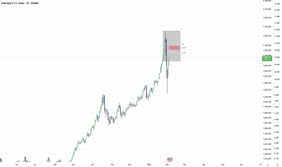 I am looking for trend rejection at $5290 range.. since gold took out is daily support at $5000.. This retrace in my opinion is where you exit positions if you are long. Good luck on everyone who will long from here. It is easier closing positions from here and re-enter if price close a daily candle above ATH... with a tight SL. This metal is in its euphoria stage and taking some chips from the table is never a bad thing... Read more -