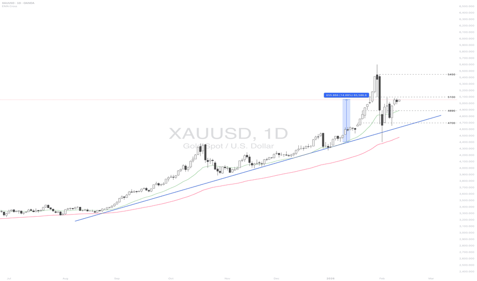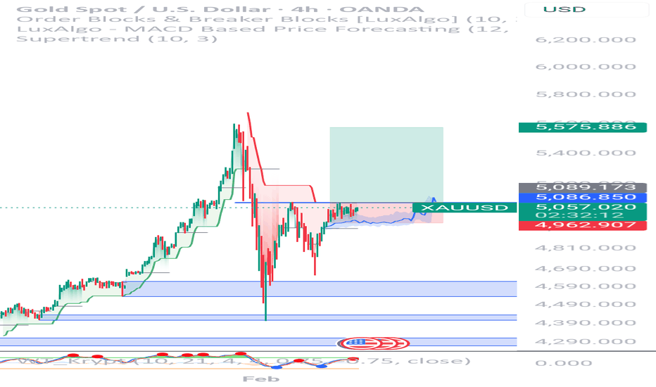 On the 10 of February, gold stabilizes again above 5K$. What will happen next ? 1- Bullish scenario : We still in a bullish trend on 4H after the fast drop that happened on the 2nd of Feb but we couldn't pass the 5100$ till now. This area remains a strong resistance and you should wait if you want to take a long position as swing (Breakout + retest and confirmation on LTF) = > the targets can be easily 5158 - > 5194 - > 5350. 2- Bearish scenario : The short-term bearish is to re-visit 4930-4950 area to sweep some buyside liquidity then bounce back and go again above 5K$. The medium/long-term is to revisit 4740 area and here pay attention, if this area is broken with a high sell pressure = > 4400$ area is an easy target; A re-test on 4740$ area (re-test and confirmation on... Read more -
