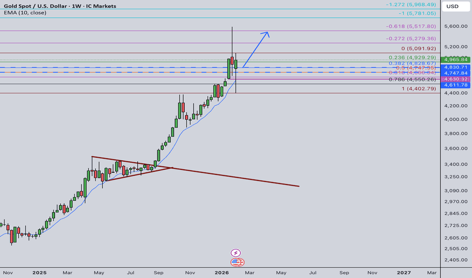 Gold has been very volatile recently. Last week it went as low as 4400 in the first day of trading and went up as high as 5091 afterward. A 6000+ range is normal in these days. If risk not managed properly, it can easily wipe out the account. I did predict it go down to 4630 but not as low as 4400. Eventually, gold closed the week with a positive candle, indicating bullish continuation. I would expect price to retrace to 4830 and go up as high as 5517 next week. Therefore, buying is my main strategy next week. Stay tune with my daily intraday signals.... Read more -