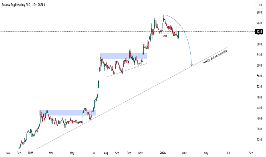 As of February 2026, the technical outlook for Access Engineering (AEL) shows a stock that has demonstrated significant long-term growth, with a 1-year return of approximately 86% and a 5-year return of 185%. Key Technical Indicators Price Momentum: The stock exhibits strong price momentum with a market capitalization of roughly LKR 71 billion. Trend Analysis: Historically, the stock has followed a clear uptrend. In late 2024, technical patterns showed the formation of a "Higher High" at 31.80 followed by a retracement, suggesting typical consolidation within a bullish cycle. Support & Reversals: Analysts previously identified possible reversal zones around 29.80, utilizing Fibonacci levels to confirm support during pullbacks. Volatility: Weekly volatility has remained relatively stable at approximately 3% over the past year, indicating consistent price action compared to the broader market. Market Position & Outlook Valuation: The current Price-to-Earnings (P/E) ratio is approximately 11.29x, which is lower than the broader LK... Read more -