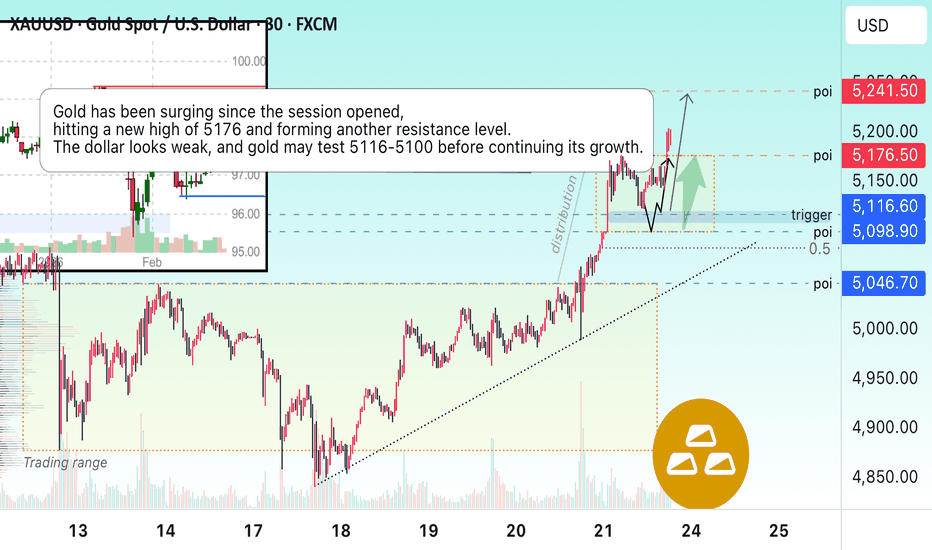 🔺Related Information: (XAU/USD) Gold prices (XAU/USD) edge modestly higher at the start of Monday’s Asian session, approaching the $5,095 area. The precious metal extends its upward momentum, supported by renewed tariff announcements from Donald Trump and ongoing trade-policy uncertainty, which continues to bolster demand for traditional safe-haven assets. On Friday, the US Supreme Court ruled that the tariffs imposed by Trump were unlawful. Shortly thereafter, the President invoked Section 122 of the Trade Act of 1974, initially introducing a 10% global import tariff, which was subsequently raised to 15%. At the same time, he confirmed that all national security tariffs under Section 232, as well as the existing Section 301 tariffs, remain fully in force. The risks and uncertainty stemming from the US trade dispute are likely to continue supporting gold’s appeal as a traditional safe-haven investment in the near term. 🔜🔜🔜🔜🔜🔜🔜🔜🔜🔜 https://www.tradingview.com/x/drTU1xbw/ 📌 Chart analysis: 🔗 Short-term timeframes: M15,... Read more