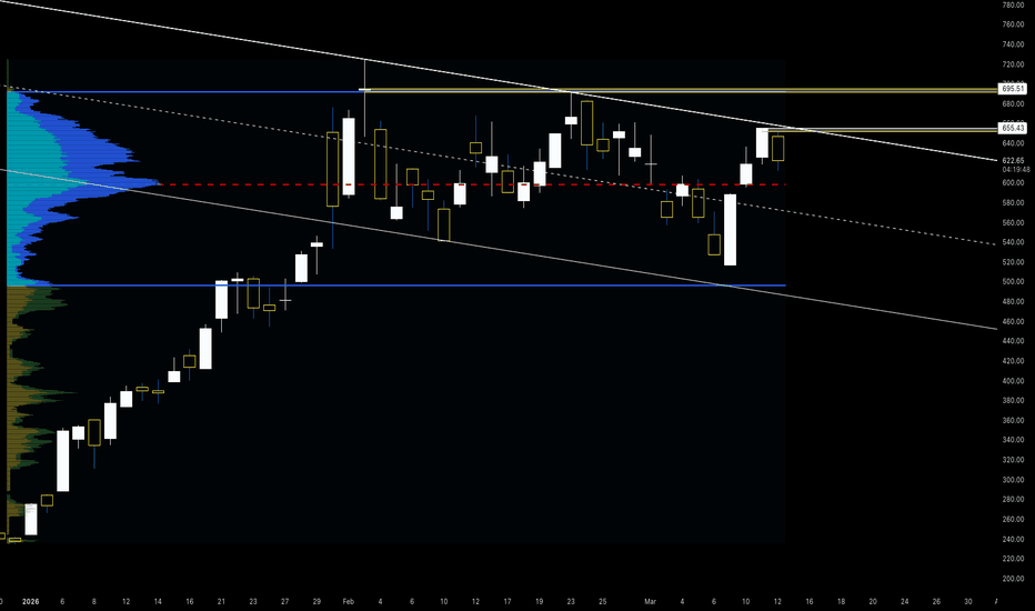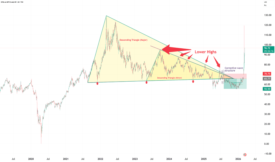 Two resistance areas are marked on the chart with red rectangles: Upper resistance zone around 88.5 – 89.5 Lower resistance zone around 86.5 – 87 These zones represent areas where: Sellers previously entered the market Price may reverse downward again if it reaches these levels. 🟢 Support Zone A support area is marked lower on the chart (green rectangle) around approximately 80 – 81. This is a level where: Buyers previously stepped in Price may bounce upward if it drops to that zone. 📉 Current Price The current price shown on the right side is approximately 84.35 USD. 📋 Watchlist (Right Panel) The trading platform watchlist includes: DXY Ethereum XAU/USD USD/JPY EUR/USD XAG/USD 🧭 Overall Interpretation The market is in a bearish structure with lower highs and lower lows. Price is currently between resistance and support, meaning the market is in a range/pullback phase. ✅ If you want, I can... Read more -