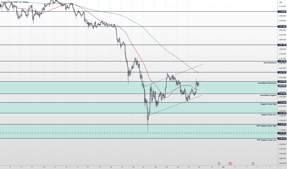 We saw a strong push higher on Friday, with price reclaiming the MA50, shifting short-term momentum and opening the potential for a move toward the MA200. Immediate resistance sits at 4529, aligning with the channel midline. A confirmed break above this level would open the path toward 4607 as the next target, while key resistance remains at the 4700 level. On the downside, immediate support is seen at 4426, in line with the channel bottom. A break below this level would signal weakness and open the door for further downside into lower support zones, including a potential retest of the lows. 📌Key levels to watch: Resistance: 4529 4607 Support: 4426 4352 4263 4169 4049 👉 Let key levels guide your decision — wait for confirmation.... Read more -