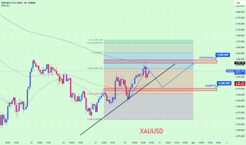 Currently, the key resistance level to watch in the short term is 4580-4600. Since the price has already stabilized above 4500, the primary support level to watch is 4480-4500. If the price breaks below 4500-4480, then we should look at the support level of 4420-4400, the lowest point of today's opening. Regardless of how the price continues to fall, we should wait for this downward correction to complete and for the price to stabilize before considering going long again. The overall strategy remains to buy on dips. 1. If the price does not fall further below the 4480-4500 level, then we can consider going long again near the support level of 4500 in the short term, and the upside target is the resistance level near 4580; (Primary trading strategy). 2. If the price breaks below the 4480-4500 support level in the afternoon, then we should wait for the downtrend to... Read more -