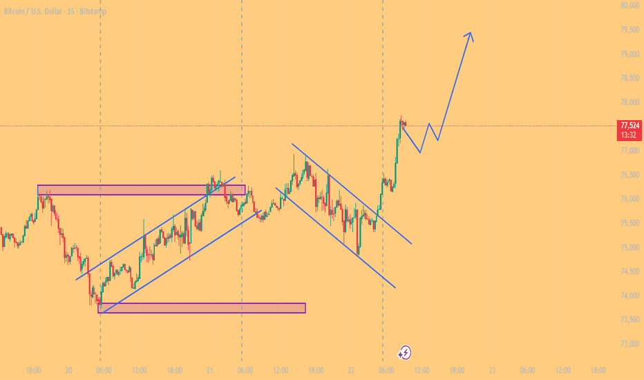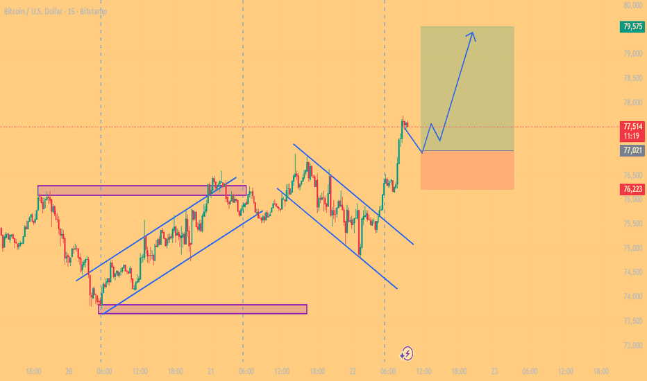 Entering a long position in this zone based on support + liquidity context. 📍 Plan: Initial entry in current zone Aggressive add around 74.8k if price dips 🛑 SL: 73.7k 🎯 Target: 80k 📊 Idea: Looking for a continuation move after potential liquidity sweep below. If price holds this area → upside expansion towards 80k. ⚠️ If support fails → I’m out fast. No emotions.... Read more -