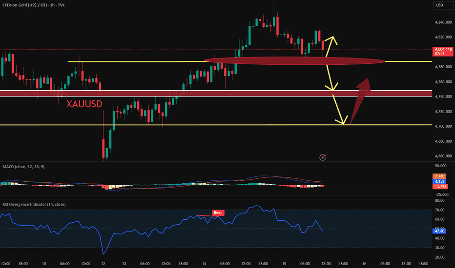 Gold is trading around 4,810 β 4,830 on M30 after a strong rally driven by weaker USD (post-PPI) and ongoing geopolitical uncertainty. π Market Context β’ US PPI came softer β USD weakens β supports gold β’ Oil pulling back on peace expectations β easing inflation pressure β’ Safe-haven demand still present as USβIran tension remains unresolved β Mixed macro, but gold still holding bullish structure π Technical Overview (M30) Price is moving inside a rising channel, showing controlled bullish momentum. Currently: β’ Rejecting near short-term highs β’ Potential pullback into demand / retest zone π Key Levels π’ Support: 4,790 π’ Deeper Demand: 4,754 π΄ Resistance: 4,850+ π― Upside Target: 4,894 β‘ Scenarios Bullish: If price holds above 4,790 β continuation toward 4,850 β 4,894 Bearish (pullback first): If price loses 4,790 β sweep toward 4,754 before continuation π§ Market Insight Trend is still bullish, but current structure suggests... Read more -