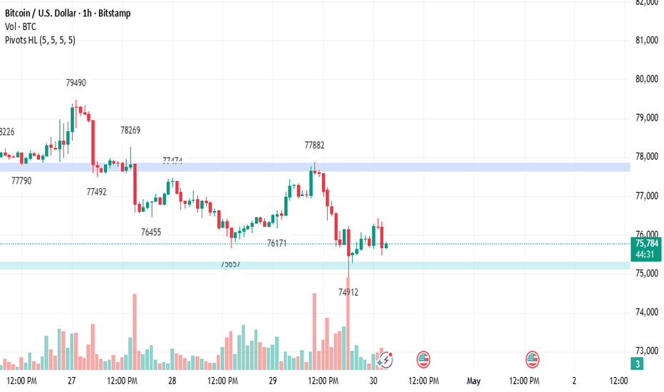 π BTCUSD Trade Setup β Bullish Momentum (1H Time Frame) π Bitcoin is showing a bullish trend on the 1H chart, with price holding a strong support zone around 76,600 π’ (confirmed on the 1H time frame). This level is acting as a key area for potential buying opportunities. π Key Level: β’ π’ Support Zone: 76,600 π Trade Idea: Looking for buying opportunities as price reacts from support with confirmation signals. π― Technical Target: π― 1st Target: 77,300 π― 2nd Target: 77,700 π― 3rd Target: 78,200 π‘ Momentum + support alignment increases the probability of an upside move. Patience for confirmation is important before entry. β οΈ Risk Management First! Always use stop-loss, manage your lot size, and avoid overtrading. Protect your capital π π Like | π¬ Comment | π Share Trade smart, stay disciplined ππ... Read more -