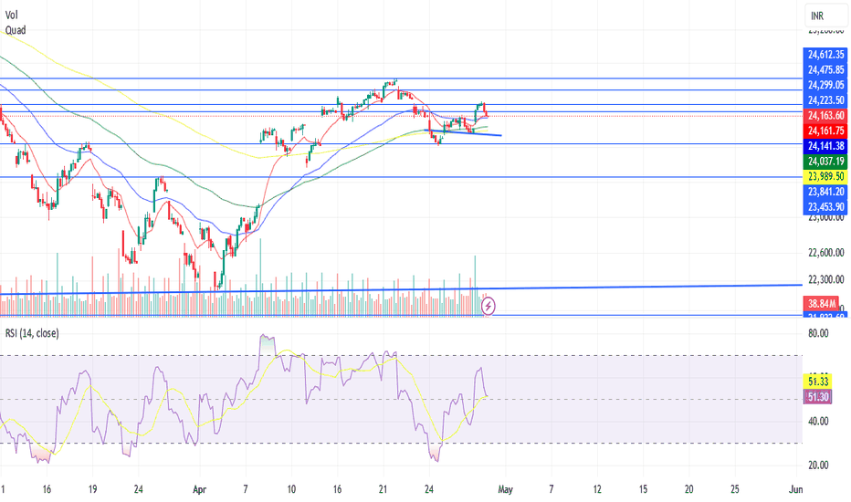 Nifty may open on gap up note as per Gifty nifty around at 24040 levels in today session. coming to yesterday session nifty opened around at 24050 lelvels from here nifty sparks upto 24180 levels at these levels bears had taken charge and pull back the nifty upto 23950 levels finally it closed around at 23995 levels with undecisiveness candle. in today also profit booking may come at higher levels so investors can take short positions at 2nd resistance levels and keep maintain strict stop losses . Nifty Levels : support levels : 23870,23720 Resistance levles : 24170,24293 Bank nifty levels : support levels : 54848,54400 resistance levels : 55982,56100 Disclaimer : I am not a SEBI Research Analyst please take advise from your financial advisor before take position based on my recommendation. Thanking for your support if liked my content please suggest to your friends to follow my channel... Read more -