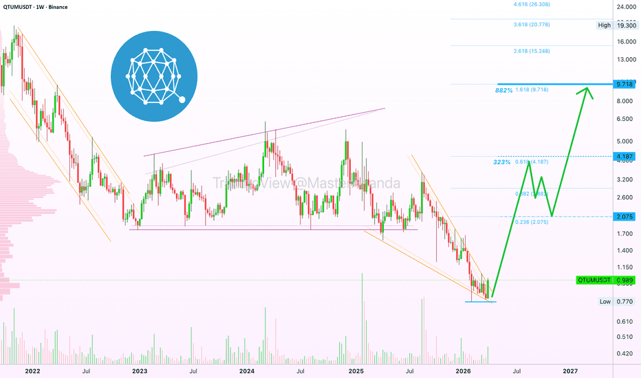 One week of bullish action deletes seven weeks of bearish action, after a higher low. This is easy chart reading. The full green candle this week on QTUMUSDT is breaking out of a falling wedge, a bullish reversal pattern. Early reversal signals are everywhere, and many that are not so early. The altcoins market is now bullish. No longer we are talking about bullish potential, we are talking about a bullish altcoins market. The multiple years long sideways period becomes the baseline level for QTUM and all the pairs with a similar chart pattern. The drop starting August 2025 ending February 2026 can be seen as a long-term liquidity hunt event. There will be a strong recovery back to baseline, then some consolidation followed by additional growth. The target shown on the chart is only the start. The market can grow for years, can be 2-3 years just as it... Read more -